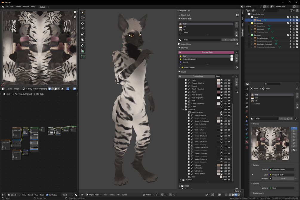 - Blender files with configured, paintable texture layers and masks through Ucupaint.